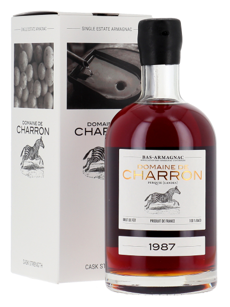 Cette cuvée millésimée 1987 du Domaine de Charron est un Armagnac d’exception, provenant du Bas-Armagnac et élaborée exclusivement à partir du cépage Baco. Embouteillé « Brut de Fût », sans ajout d’eau ni de sucre, dans le respect pur de la tradition. Le degré naturel de 46,7 % en fait une eau-de-vie d’une belle intensité et d’une grande authenticité. Cette bouteille séduira les amateurs exigeants et les collectionneurs à la recherche d’un Armagnac rare, mûri en fût neuf selon les méthodes artisanales du domaine.