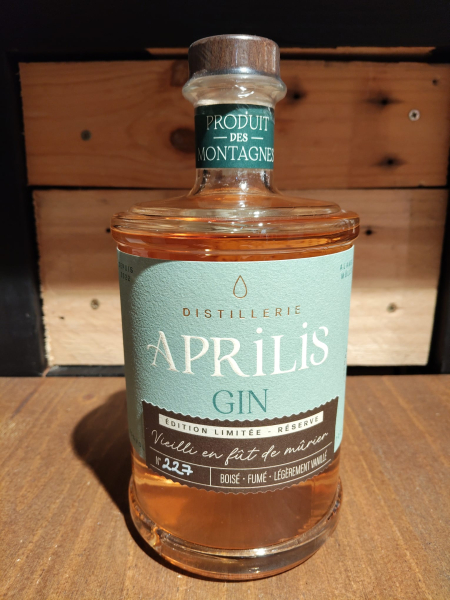 Aprilis - Gin Bio - Fût de mûrier est un gin produit en édition limitée par la distillerie savoyarde Aprilis. Cette version est une relecture du gin vieilli à travers le passage court en fût de murier. Ce gin atypique est à déguster sec ou à adapter en Old Fashioned. Un voyage intéressant pour les aventuriers du gin.